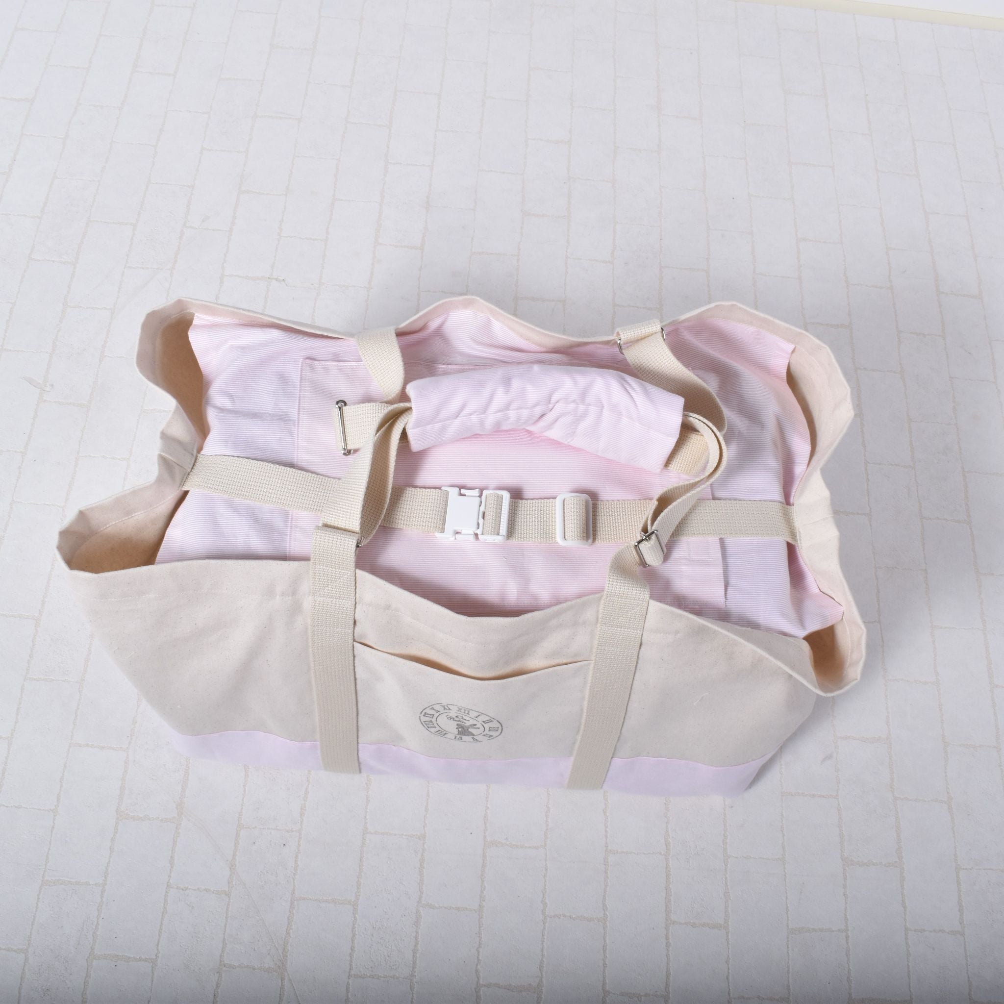 しっかりとした帆布を使用し、紐を底まで一周することで、重いキャリーを持ち歩いても飼い主様とバッグへの負担を軽減します。