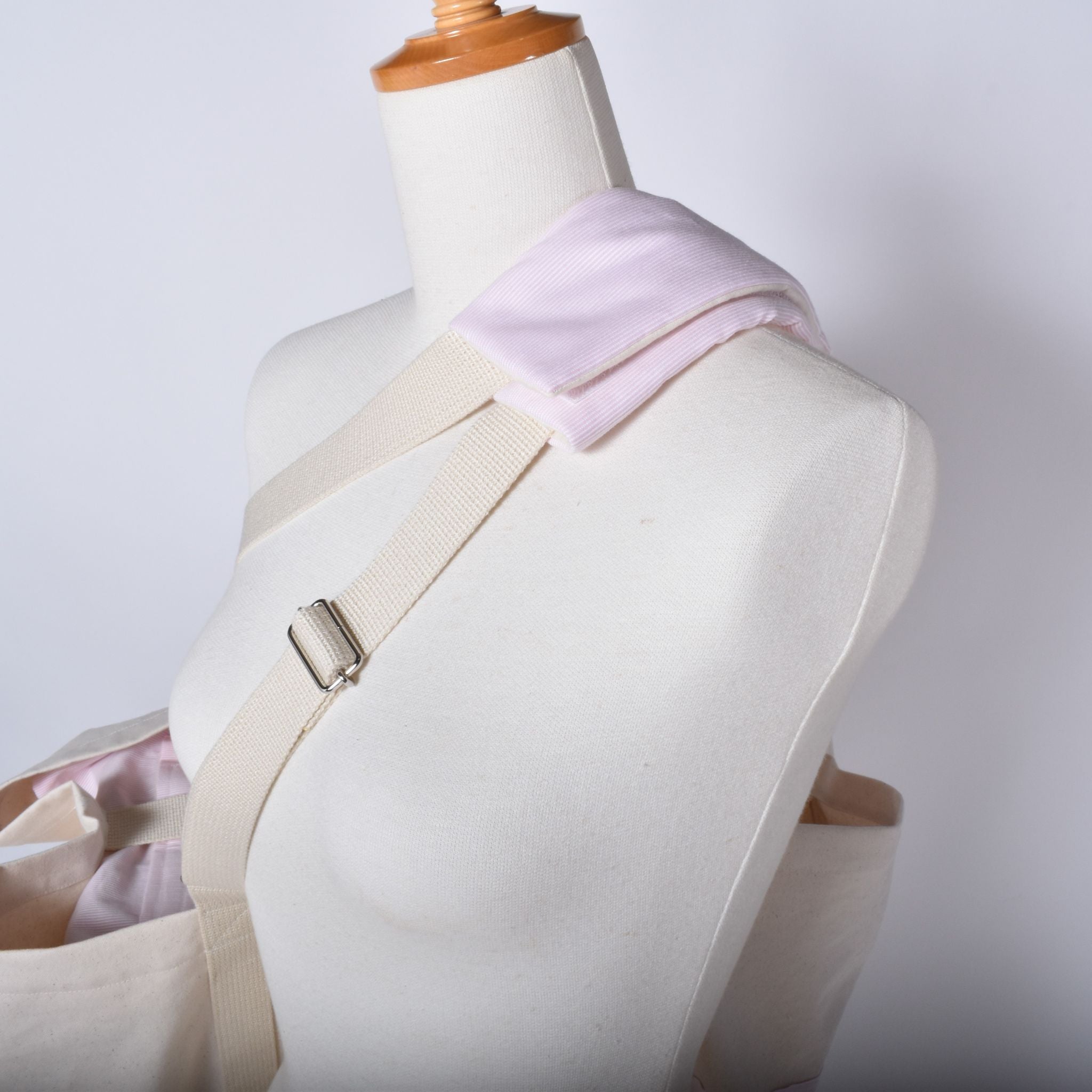 手持ちの場合は、パットなしでも大丈夫ですが、ショルダーの場合は、パットを付けると、負担が軽減されます。